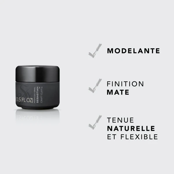Créez votre coiffure avec un effet mat et sec grâce à l’argile Sebastian Professional Craft Clay. Ce produit coiffant professionnel apporte une fixation naturelle dès les racines, tout en modifiant la texture du cheveu et en laissant une finition mate. Ce coiffant texturisant remodelable convient particulièrement aux cheveux courts à moyens ; il apporte du volume et une forte définition aux cheveux. Infusée de minéraux naturels, cette argile modelante Sebastian sépare et recoiffe les cheveux.