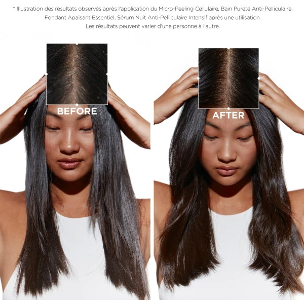 Les résultats : L’efficacité anti-pelliculaire est cliniquement prouvée jusqu’à 7 semaines après l’utilisation du produit*. 88% des consommateurs disent être soulagés de démangeaisons**. Pour une routine complète, pensez à réaliser le Micro-Peeling Cellulaire Symbiose en amont du shampoing, poursuivre avec le Fondant ou le Masque Symbiose, puis terminer avec le Sérum Cellulaire Nuit Anti-Pelliculaire Intensif de la même gamme. *test instrumental : après application du Bain Pureté Anti-Pelliculaire **après 4 semaines d’utilisation – test consommateur sur 34 personnes