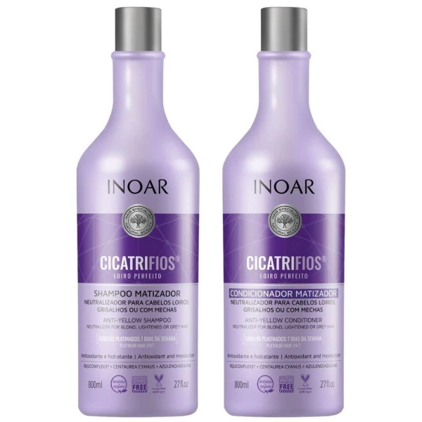 Duo shampooing & conditionneur Cicatrifios Inoar, pour renouveler tous les types de cheveux.