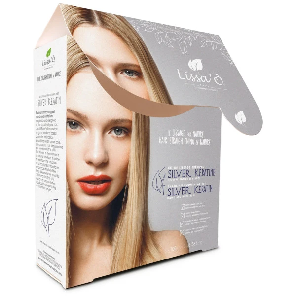 Découvrez le kit de soins de lissage Silver de chez Lissa’o, pour des cheveux lissés à la perfection. Le kit de lissage brésilien Silver Keratin est adapté aux cheveux blonds et blancs afin d’éviter les reflets non souhaités, dits « jaunissants ».