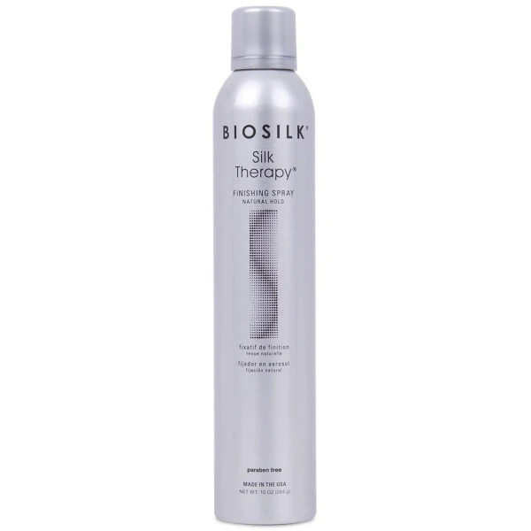 La laque de finition Finishing Spray Natural Hold Solk Therapy de Biosilk est un spray de finition qui permet de maintenir la coiffure tout en laissant les cheveux souples. Grâce à sa formulation à base de protéines de soie, cette laque de finition donne un maximum de brillance aux cheveux, et ils sont renforcés.