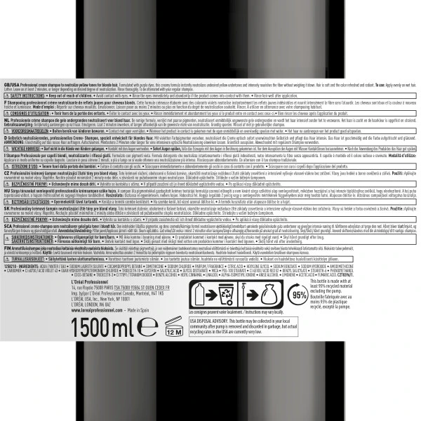 Application : En alternance avec votre shampooing habituel, appliquez uniformément sur cheveux mouillés. Emulsionnez. Laissez poser 2 minutes ou plus selon le degré de neutralisation souhaité. Rincez abondamment.