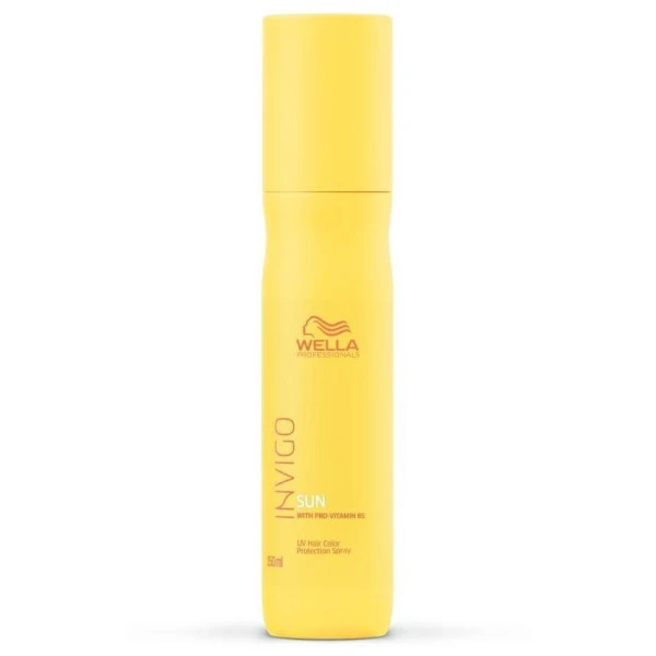 SPRAY DE PROTECTION SOLAIRE INVIGO SUN. AVEC DE LA LA PROVITAMINE B5. Ce spray nourrit, hydrate et apporte une protection UV haute performance pour les cheveux colorés et décolorés. Idéal pour l’été pour protéger les cheveux des agressions extérieures.